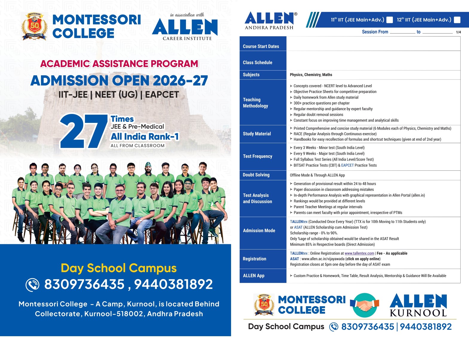 Col. ALOK TRIPATHY Group Commander NCC GP HQ, Kurnool. visited Montessori Sr. Secondary School in Kurnool , February 13, 2026, to conduct an official inspection and interact with the school’s National Cadet Corps (NCC) unit. The officer reviewed the training standards and discipline of the cadets at Montessori Sr. Secondary School, Kurnool. He engaged with the students to discuss the importance of leadership, national service, and the core values of the NCC. NCC remains a primary activity at the institution, alongside other programs like science fairs and cultural events. This visit follows a pattern of high-level military interactions at the school; recently, the Kurnool Group Commander also visited the campus to motivate students on patriotism and service.