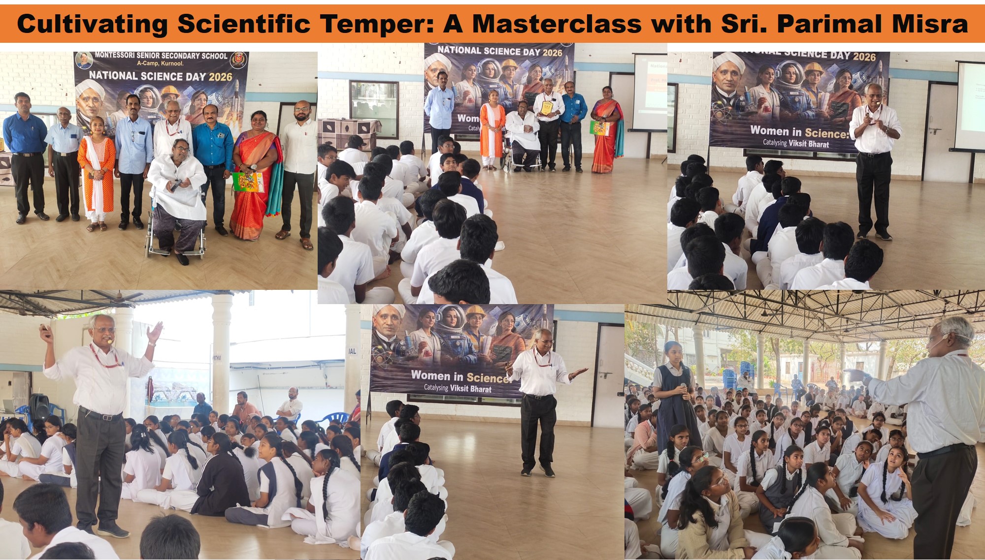 | It sounds like a fantastic opportunity for the students! Having someone of Sri. Parimal Misra’s caliber—balancing both academic depth as a Senior Professor and practical application as a Chief Scientist—is the perfect way to bring the concept of “Scientific Temper” to life. Sri. Parimal Misra, Senior Professor & Chief Scientist, Dr. Reddy’s Institute of Life Sciences. The session focused on moving beyond textbooks to embrace a mindset of inquiry. Sri. Misra’s lecture broke down complex scientific philosophies into actionable habits for students. The highlight of the event was the interactive Q&A session. Students engaged with Sri. Misra on topics ranging from the daily life of a scientist to the future of life sciences. His ability to connect high-level research at Dr. Reddy’s Institute with the curiosity of young minds left a lasting impression on the Montessori senior secondary students. |