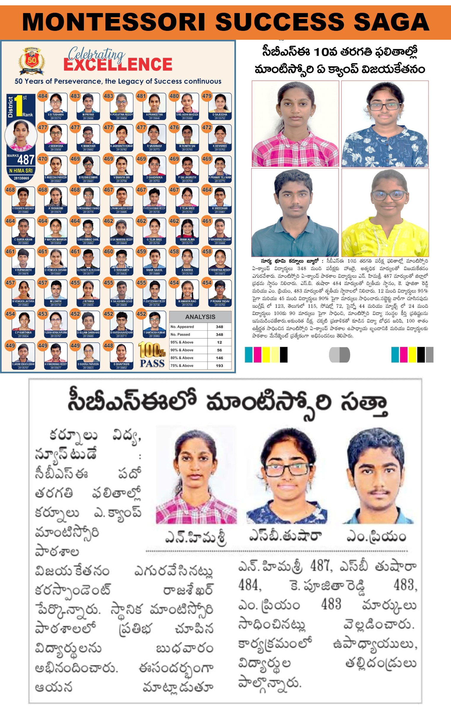 Students of Montessori Sr. Secondary School, Kurnool, achieved significant success in various categories at the competition organized by the T.G. Venkatesh Fine Arts Academy. While specific lists for every category vary by event year, the school consistently reports top honors in cultural and literary segments organized by such local academies