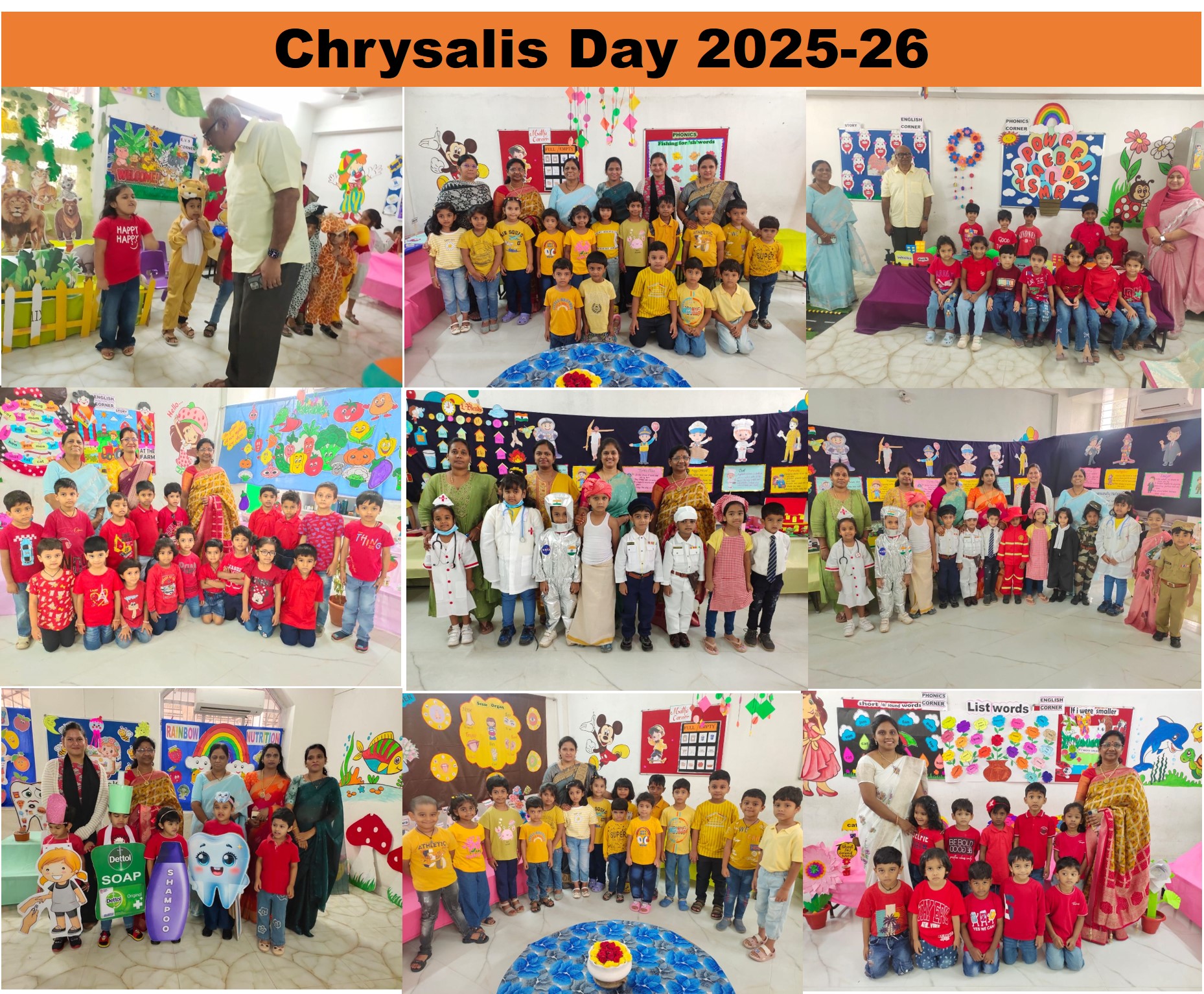 | Chrysalis Day at Montessori i-kids, A-CAMP, Kurnool is a signature annual event that celebrates students’ unique thinking and transformation. The celebration highlights the journey of young learners as they transition from “cocoons” into “butterflies,” showcasing their growth in academics, confidence, and social skills. Student Showcases: Children often take the lead as “facilitators,” guiding their parents through various learning activities, innovative projects, and creative displays that reflect their unique thinking. Thematic Performances: The event typically includes vibrant cultural programs, such as dance and music, centered around themes of growth and holistic development. Parental Engagement: Parents participate in interactive sessions, sometimes even taking on the role of “learners” as their children demonstrate what they have mastered in the ThinkRoom environment. During the event, the Chrysalis TEAM presents a token of appreciation to the teachers to honor their dedication and hard work. |